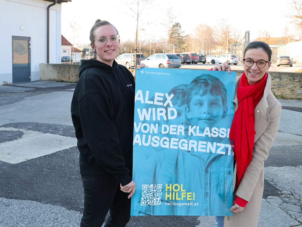 Im Bild Sozialpädagogin Verena Schober-Denk (li.) und die Horner Stadträtin Barbara Stark mit einem der Plakate.