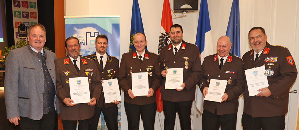 Leistungsbilanz, Tätigkeitsbericht sowie Angelobungen und Beförderungen standen auf dem Programm der Mitgliederversammlung 2025 der FF Horn. Für seine positive Berichterstattung über die FF Horn, die er über 40 Jahre ausübte, wurde NÖN-Mitarbeiter Rupert Kornell mit der höchsten zivilen Auszeichnung des Landesfeuerwehrverbandes, der „Florianiplakette“, ausgezeichnet.
