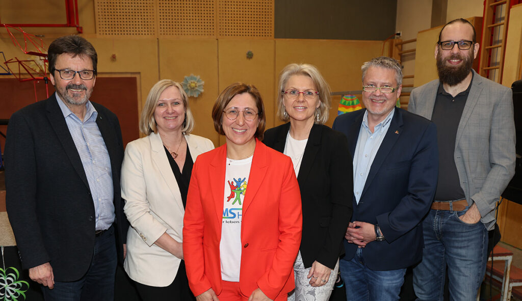 Ganz viel Lob konnte schließlich Direktorin Martina Auß für sich, ihre Lehrer und Schüler einheimsen – am Bild von links: Horns Bürgermeister Gerhard Lentschig, Volksschuldirektorin Andrea Dittrich, Martina Auß, Schulqualitätsmanagerin Andrea Strohmayer, Personalvertreter Christian Rametsteiner und Poly-Direktor Thomas Lederer.