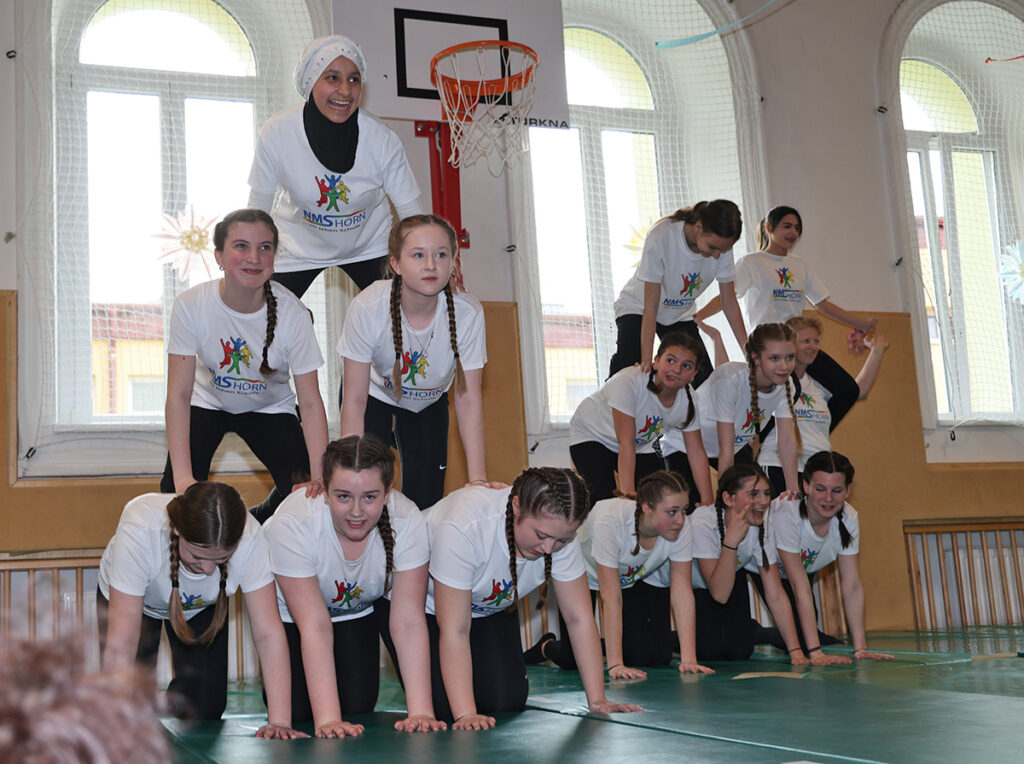 Die Mittelschule Horn lud zum Frühlingsfest – Eltern, Omas, Opas, Tanten, Onkeln und Verwandte ließen sich das nicht entgehen und waren vom Gebotenen begeistert. Beide Turnsäle waren bis auf den letzten Platz gefüllt, vielen Gästen blieb nur ein Stehplatz.