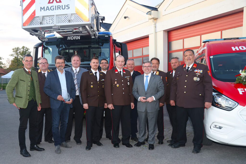Gleich drei neue Einsatzfahrzeuge – die Drehleiter, ein Mannschaftstransporter und ein Vorausfahrzeug – wurden am 10. Mai 2025 in einem feierlichen Rahmen gesegnet und offiziell in den Dienst gestellt. Dieser für die Horner Feuerwehr bedeutsame Moment wurde nicht nur von der Feuerwehrfamilie, sondern auch von zahlreichen Ehrengästen begleitet.