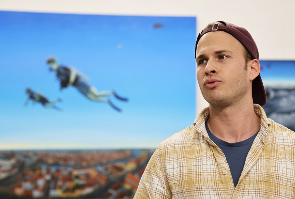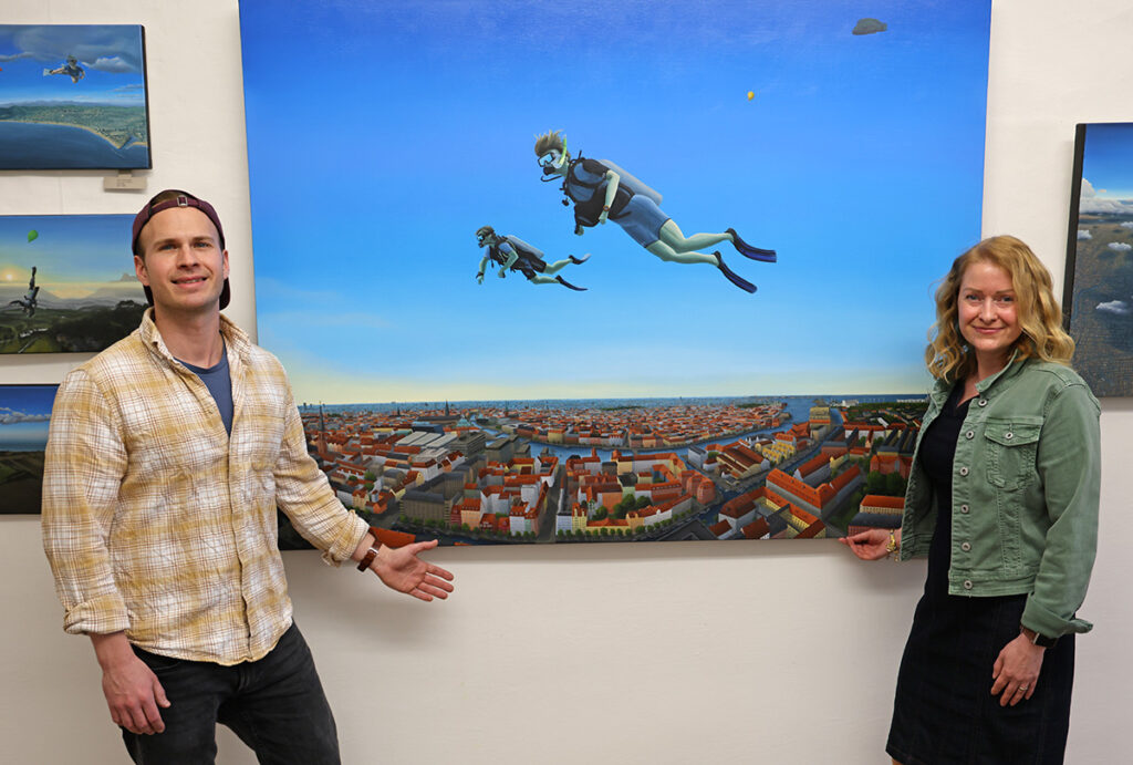 Der Eye-Catcher (Bild oben) als zentrales Bild der Ausstellung von Sebastian A.F. Jensen in der Pop-up-Galerie Horn passt perfekt zum Thema der Ausstellung: „Ein Vorgeschmack auf den Sommer“.