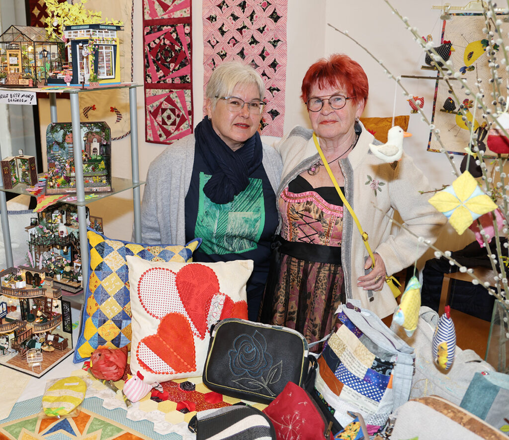 … sie durfte am Patchwork-Stand ihrer Freundin Elfriede Zuba (re.) einige Exponate ausstellen. Für Weihnachten wird sie sich um einen eigenen Stand bemühen.
