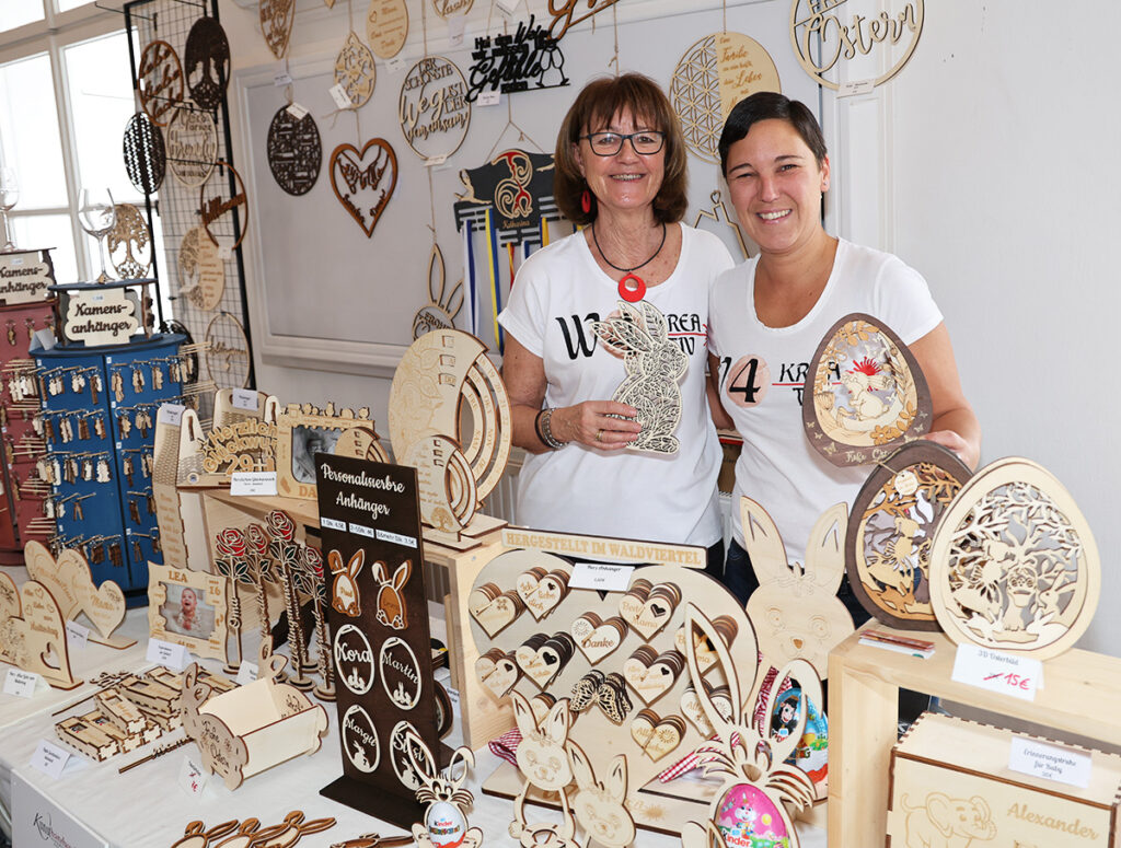 Mit Unterstützung ihrer Mama Maria Köller (li.) verkaufte Michaela Murtinger-Prazak ihre Kunsthandwerksprodukte (W4Kreativ e.U., Horn).