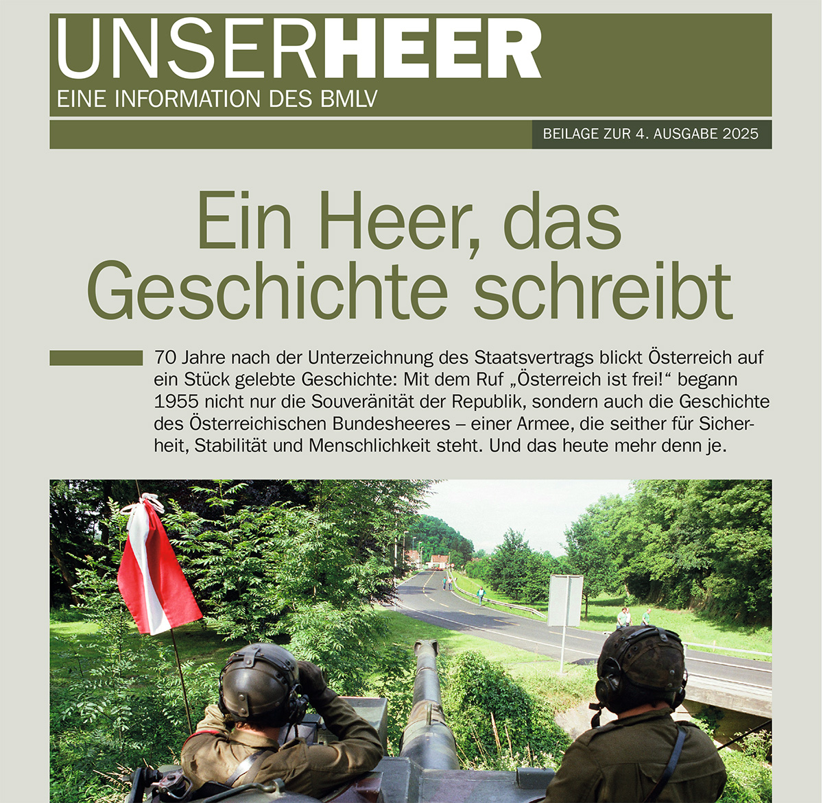 „UNSER HEER“ ist eine Informationsbroschüre des Bundesministeriums für Landesverteidigung. Hier die aktuelle Ausgabe 4/2025.